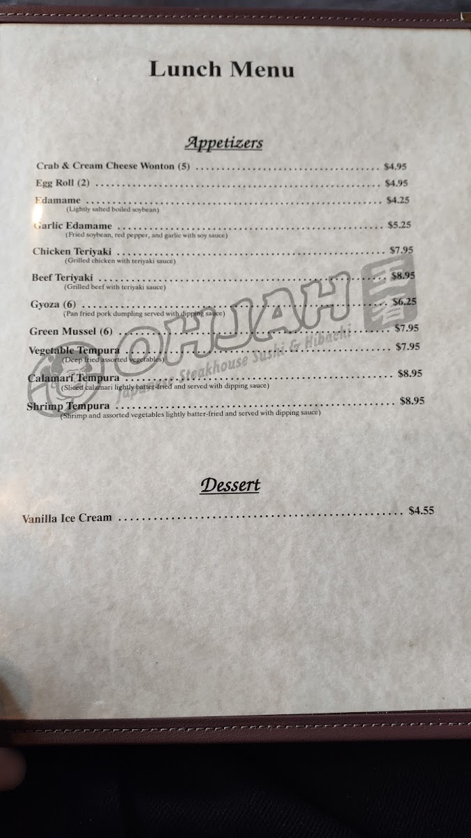 Introducing the Menu at Ohjah Japanese Steakhouse